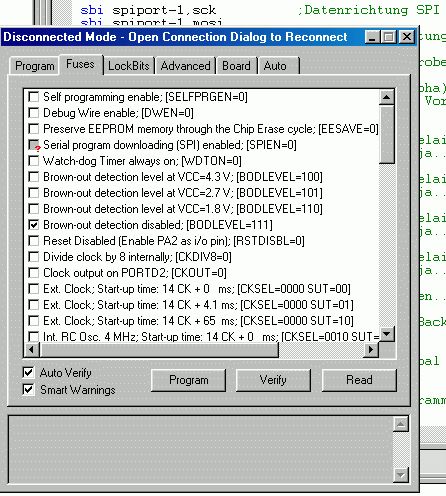 Disconnectet-Mode. Aber man kan den Reiter "Fuses" erkennen.