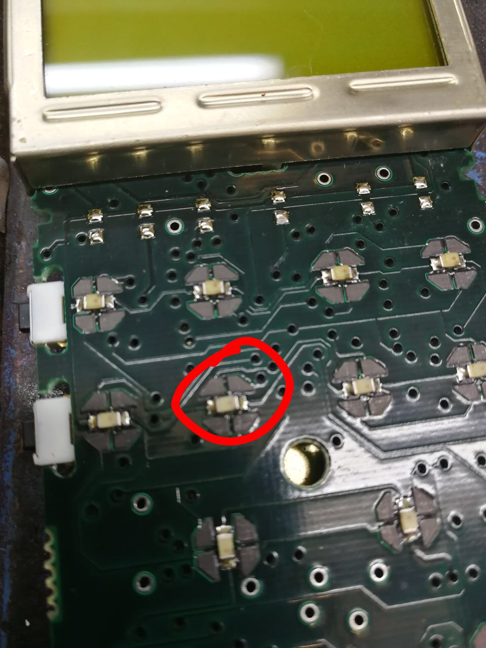 hm, sieht für mich aus wie eine SMD-Led in 0603(?) https://www.digikey.de/product-detail/de/rohm-semiconductor/SML-D12M8WT86/511-1578-1-ND/1641810 die ist für die Hintergundbeleuchtung der Tasten zuständig - so wie es aussieht