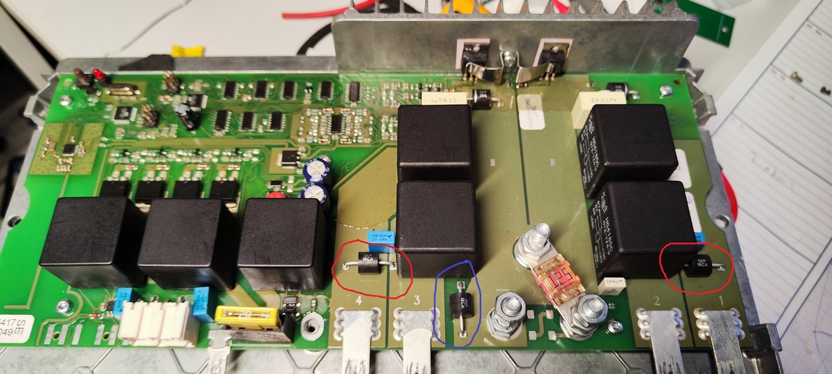 Hallo, Leider ist mir heute durch Stress auch der Fehler passiert, dass ich + mit - vertauscht habe. Jetzt hat es die Dioden zerschossen. Weiß jemand welche Dioden ich verwenden kann ? Hätte mir diese raus gesucht, würden diese passen ? https://www.reichelt.at/at/de/gleichrichterdiode-45-v-10-a-do-201-sbr-10u45sd1-t-p217019.html?PROVID=2807&gclid=Cj0KCQiAgaGgBhC8ARIsAAAyLfEzy7tKgAU7HDChqY_HnKn5d2XrOv-BBY3-vCiFI176qKXFDD5zkCAaAoF0EALw_wcB Hoff das hier noch wer reinschaut :) lg Manuel