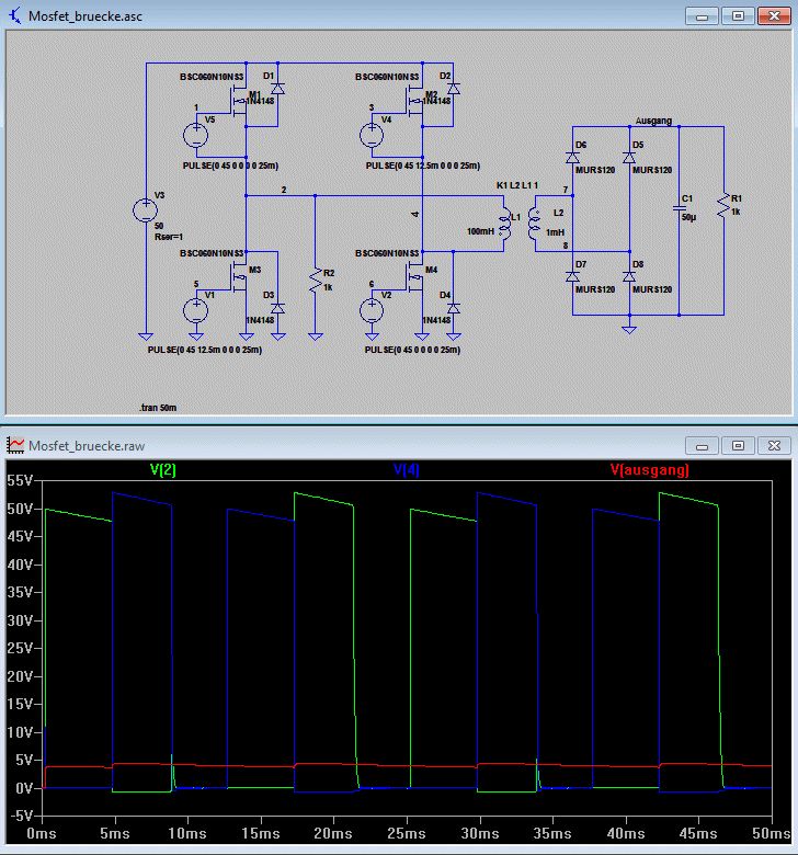 ich hab es bis hier geschafft die MOSFETS mit der 50 hz ein und auszuschalten und ich wollte jetzt mal fragen wie lass ich v2 und v4 zwischen +50 und -50 schwanken ? lg