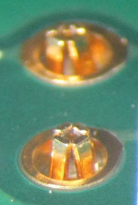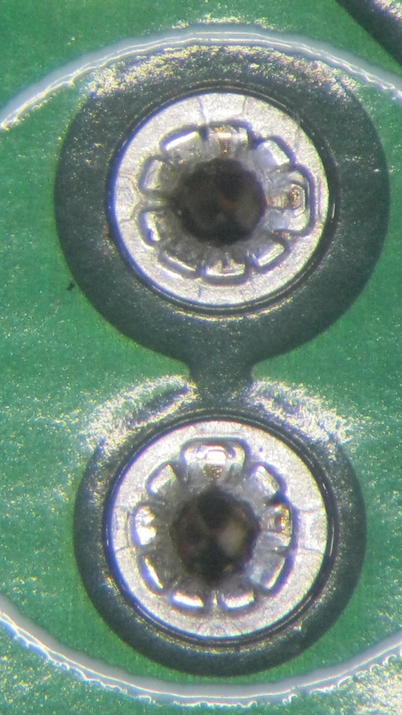 Hallo, um eine bedrahtete Photodiode mit langen Anschlussdrähten durch eine Evaluationsplatine stecken zu können, hat die Platine die abgebildeten, in ein Bohrloch eingelöteten Kontakte. Kennt jemand eine Bezeichnung dafür oder gar eine Bezugsquelle? Pogo-Pins wie http://image.made-in-china.com/2f0j00ieMQycTKfOop/Pogo-Pin.jpg sind nicht die Lösung, da kein Durchstecken möglich ist. Danke!