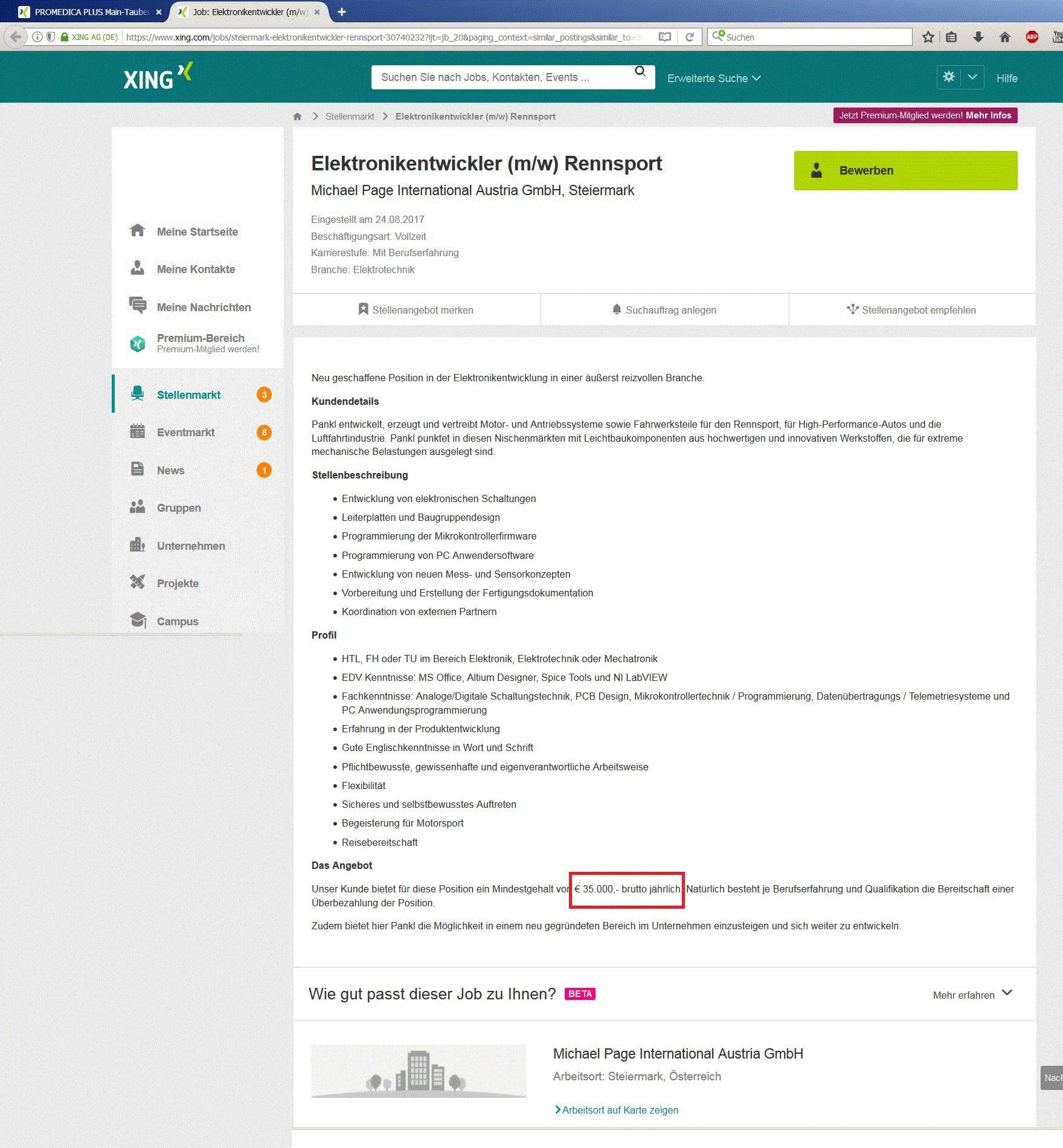 Es ist in AT so üblich, dass da so wenig drinsteht. Warum das so ist, weiß ich auch nicht. Möglicherweise hat das rechtliche Gründe. Kuckt man hier: http://www.ams.at/ Weitere Beispiele: https://jobroom.ams.or.at/jobsuche/FreieSucheVollanzeige.jsp?index=1&pk=3711030_87_18d9f963-66d9-4fae-873b-5c1f8a4&x_string=2017-09-11T10:04:38 36400€ https://jobroom.ams.or.at/jobsuche/FreieSucheVollanzeige.jsp?index=7&pk=4079344_15_d2427cbc978148e3b095efa4e7ce5634&x_string=2017-09-11T10:04:38 32900€ Dass die Löhne für derartige Jobs in AT tatsächlich etwas niedriger liegen, stimmt schon. Aber so wenig ist es nicht. Kann man sich ja an einer Hand abzählen, wieviele Bewerbungen dass die da bekommen würden, wenn das ernst zu nehmen wäre ;-)