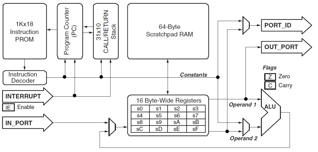 http://www.mcu-turkey.com/wp-content/uploads/2012/12/picoblaze_Architec.jpghttp://3.bp.blogspot.com/-tL-oQJMDhQI/UXMt4lGYtxI/AAAAAAAAATc/pSKvyAKdWhw/s1600/core.jpghttps://www.xilinx.com/support/documentation/ip_documentation/ug129.pdf