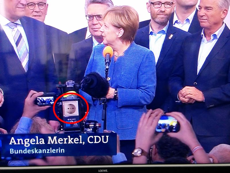 Route 6. schrieb: > Oder, wie bereits gesagt, ein Photoshop-Fake. Die ganze Apparatur gehört da nicht hin. Die würde nämlich den Blick auf Frau Merkel für die kleine Kamera links daneben verdecken.