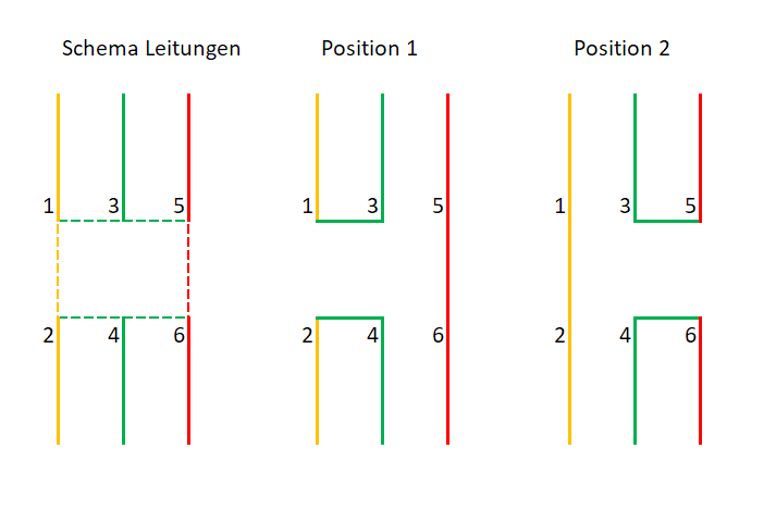 Hallo liebe Leute ich habe lange gesucht und mich hier nun angemeldet. Schliesslich habe ich hier schon oft als Leser hilfreiche Tipps gefunden. Ich habe mir einen Bissschalter angeschafft, damit die Hände frei bleiben. Zusammengebissen gibt's Kontakt- sonst nicht. Diesen möchte ich wahlweise bei zwei Leitungen einsetzen. Damit das einfach und komfortabel geht möchte ich in das Funkgerät einen kleinen zusätzlichen Kippschalter einbauen der diese Wechselschaltung ausführt. Mit meinem vorhanden Schalterequipment finde ich nur Lösungen indem ich zwei Schalter verwenden müsste. Best case wäre ich habe einfach nicht geschnallt wie es geht, vermute aber, es steht eine Neuanschaffung an, nur weiss ich nicht mal genau wie das Ding heisst, um es zu finden. Im Schema grün würde PIN 3 und 4 zum Beissschalter führen den ich wahlweise in die zwei anderen Leitungen einfügen möchte. Das Problem die Leitung welche nicht angeschlossen wird soll dann aber kurzgeschlossen werden. Gibt es so einen Schalter?