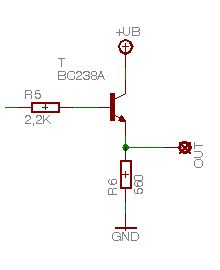 Hallo Ich habe beigelegte Schaltung. Mein Plan war eigentlich, daß ich an die Basis 5V lege und dann an OUT die Spannung UB (12V) bekomme. Leider ist da der Wurm drin und ich messe nur etwas unter 5V. Habe auch schon verschiedene andere Standard-Ts ausprobiert. Wo ist mein Brett vorm Kopf? Danke