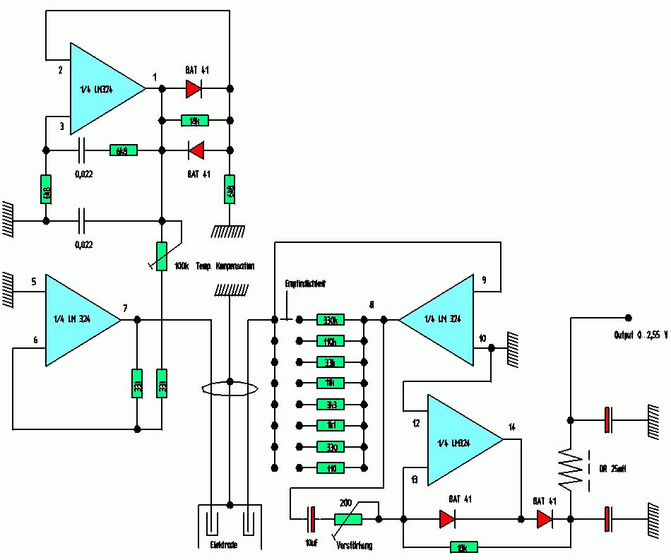 Hallo zusammen! Hoffentlich bin ich mit meiner Frage im richtigen Bereich gelandet. Ich möchte mit einem Sensor die Wasserqualität überwachen. Diesen Sensor hab ich mir dafür besorgt: https://www.waterfilters.net/hm-digital-sp-5-single-sensor-probe.html Das Problem ist aber, dass ich mit meinem Controller keine großen Unterschiede messen kann obwohl sich bei verschiedener Qualität was ändern müsste. Dazu kommt, dass nicht klar ist was der Sensor überhaupt ausgeben müsste. Es ist mir nicht gelungen irgend eine info dazu zu bekommen weshalb ich das Teil mal an ein Oszi gehängt habe. Da gibt es keine digitalen Signale weshalb ich davon ausgehe, dass da eine analoge Spannung herauskommt. Sehr geringe Spannungsänderungen kann man da erkennen. Jetzt wollte ich einen kleinen MEssverstärker aufbauen (TL071 ist vorhanden). Leider kenne ich mich mit der Beschaltung von OPs so garnicht aus. Bei den Schaltungen die ich bis jetzt gefunden habe ist Anschluss nicht beschaltet was mir merkwürdig vorkommt. Hat jemand eine komplette Schaltung für diese Aufgabenstellung? LG Wolfgang
