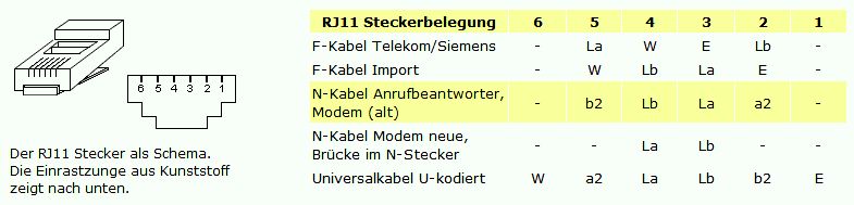 Rufus Τ. F. schrieb: > npn schrieb: >> Telekom (abweichend von der Norm): Das äußere Paar > > Das ist nicht Telekom, das ist Siemens. > > Telekom belegt von links nach rechts. Seit wann stellt die Telekom, oder damals DBP etwas selber her? Die übernehmen genau den Standard vom Originalhersteller, in dem Fall bei Sinus meist Siemens, also genau die gleiche Belegung. Und Siemens oder Gigaset machen bei ihren OEM-Produkten für andere Vertriebswege keine Extrawurscht was solche banalen Sachen angeht, wie auch. Wenn hier noch Welche schreiben oder raten den TAE-6-Stecker zu öffnen, und die zwei Drähte darin umzufriemeln, ein Tausch von a > nach b oder umgekehrt bringt gar nichts! Man sollte vllt. mal das Ausgangsposting richtig lesen, da stand was von 2-adrigem Kabel, ergo RJ11-Stecker neu crimpen, im TAE6-Stecker passt alles!
