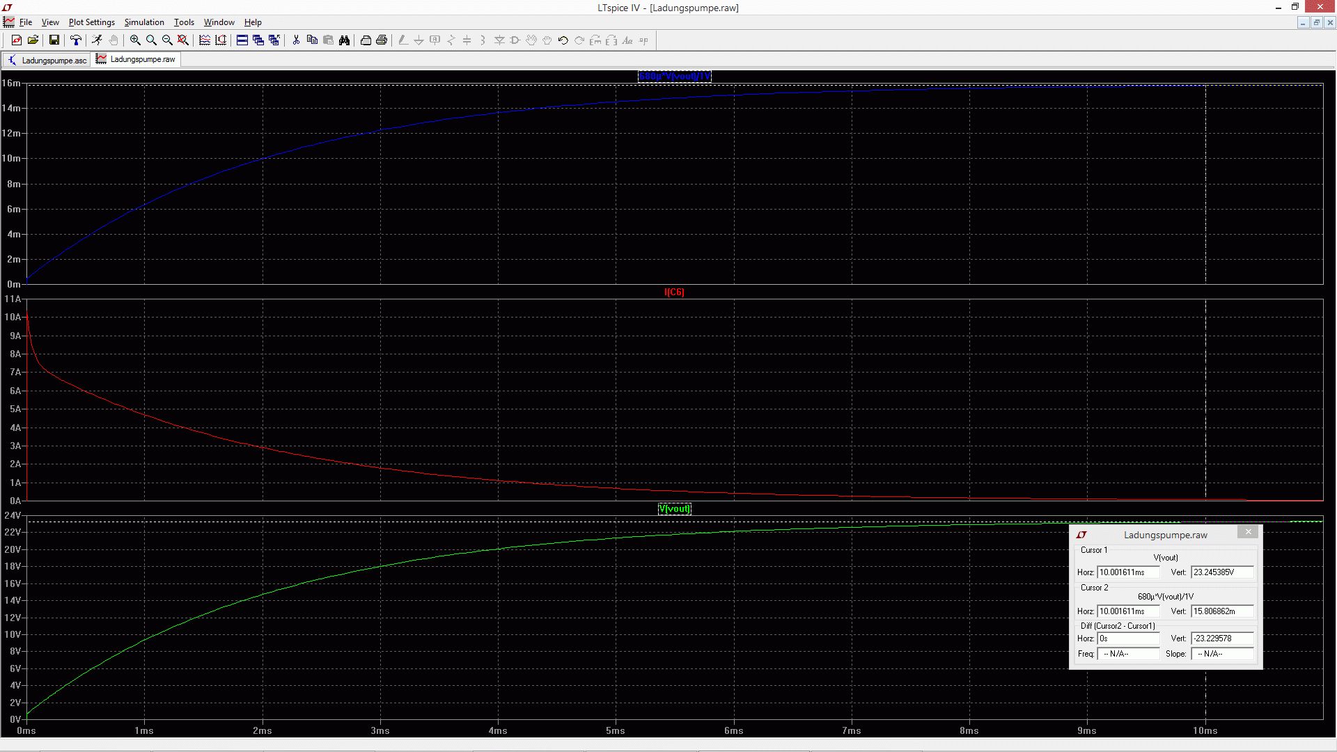Hi! Kann ich mir in ltSpice die Ladekurve für einen Kondensator anzeigen lassen? Ich meine explizit die elektrische Ladung Q zum Zeitpunkt t, nicht die Spannungskurve. Die Lade-Kurven für die Spannung und den Strom am Kondensator verlaufen reziprok, Spannung degressiv bis auf xV steigend, Strom degressiv bis auf 0A fallend. Q=C*U und C=I*t/U Kann ich mir nun in LtSpice die Ladung Q zum Zeitpunkt t aus den Kurven der Spannung und des Stromes von T=0 bis t ermitteln und anzeigen lassen?