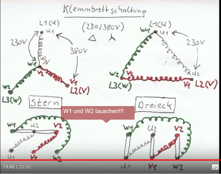 @Sven <Da hat dir ja schon jemand drauf geantwortet, nämlich Ben B.> <Das mit der umgepolten Wicklung verstehe ich aber auch nicht. Bei Dreieckschaltung sollte es egal sein, denn egal wie man die Wicklungen verschaltet, es kommt immer ein Dreieck mit Drehrichtung links oder rechts dabei raus.> Wenn das die Lösung ist, dann weis ich ja Bescheid und kann den thread schließen. Danke für eure Hilfe!