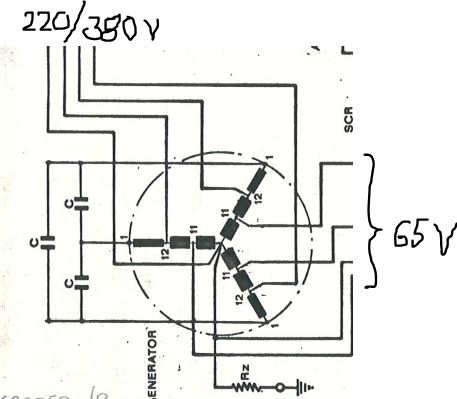 @TO habe über dein Geschriebenes und deinen Schaltplanauszug nochmals nachgedacht und poste Dir mal folgende Links: 1) https://de.wikipedia.org/wiki/Asynchrongenerator#Magnetische_Erregung 2) Beitrag "selbsterregten Asynchrongenerator wiederbeleben" So wie es in 2) dargesellt wird könnte deinem Generator die Erregung fehlen, weshalb Du Ihn irgend wie Schwach elektromagnetisch anregen müsstest, damit er sich wieder selbst hochschaukelt. Die Spulen wirst Du ja alle durchgemessen haben?