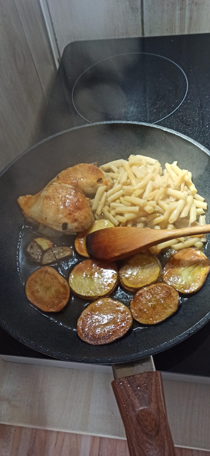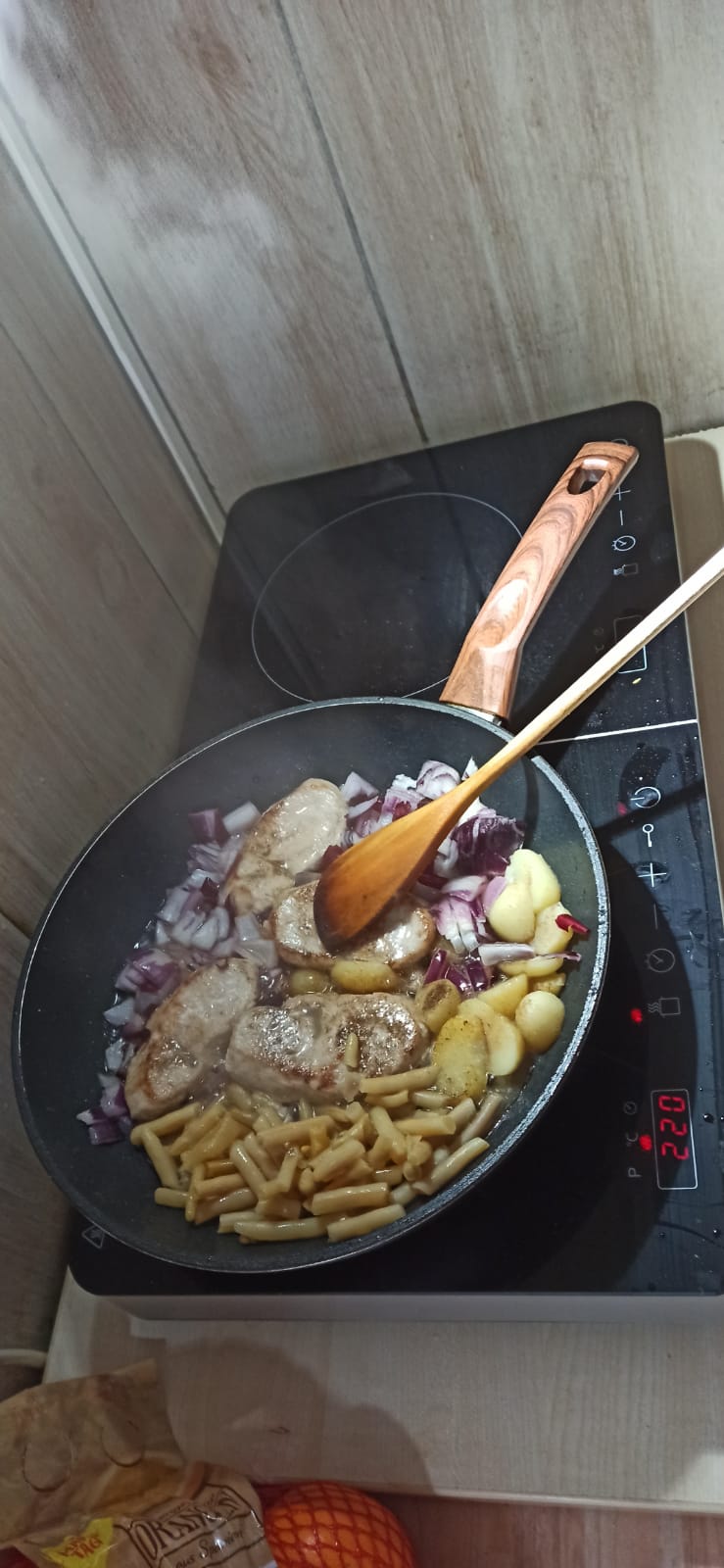 Am Samstag wieder mal Hähnchen gemacht,1kg Zwiebeln mit einer großen Kartoffel mit im Netz. Das war dann mit Schnippelbohnen aus dem Glas mein Mittagessen zum Sonntag. Man sieht , ein Kartoffel reicht.;--)) MfG ein 81 Jähriger Feinschmecker?