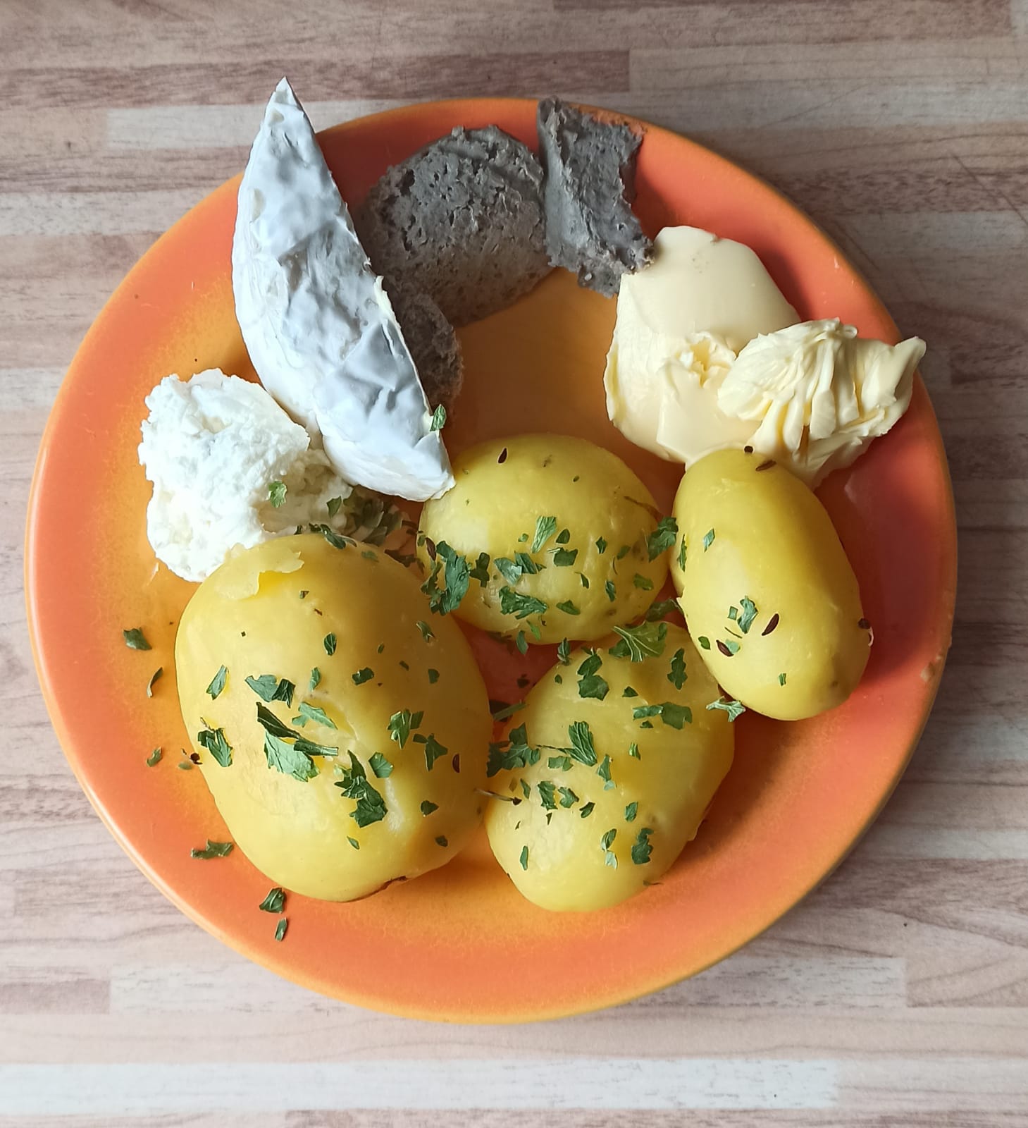 Mein aktuelles Abendbrot. Hähnchenschenkel,Kartoffeln,Zwiebel,getrocknete chileschote und gewürze nach persönlichen Geschmack. MfG ein 81 Jähriger alter knacker P.S. Ich kaue schon....
