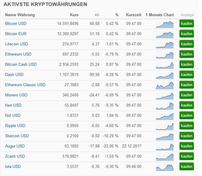 Bubbleeffekte. Die restlichen Währungen orientieren sich im Wertverlauf am Bitcoin.