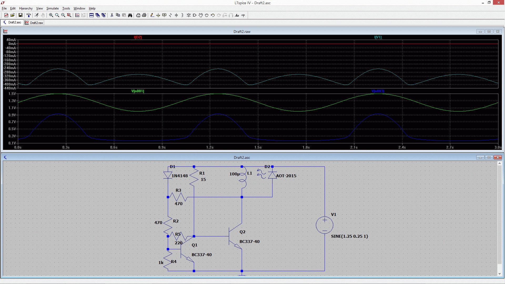 Ralf L. schrieb: > Wer keine Lust hat sich einen Joule-Thief-Wandlertrafo selbst zu > wickeln, kann bei dieser Schaltung einfach eine fertige 100µH Drossel > verwenden. > Also nach meiner Simulation geht fast gar kein Strom durch die LEDs, dh. da leuchtet gar nix. Ich hab 5V-LEDs genommen, iwie nix passendes in ltSpice gefunden. Die Drossel ist eine Bourns SDR0302-100KL http://www.mouser.com/ds/2/54/dr0302-778015.pdf