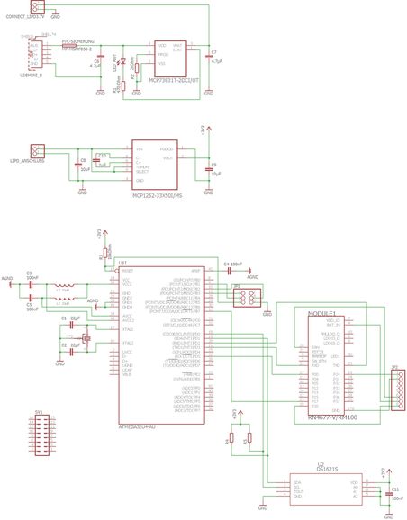 Hallo nochmals, ich habe mein aktuellen Schaltplan angehängt. Es ist noch nicht fertig. Das Datenblatt macht für mich gar kein Sinn, wenn die GNDs so oder so digital alle miteinander verbunden sind. Dann kann ich mir das Analog Ground Plane gleich sparen. Ich werde es dann halt entsprechend abändern. Danke für eure Ratschläge. MfG