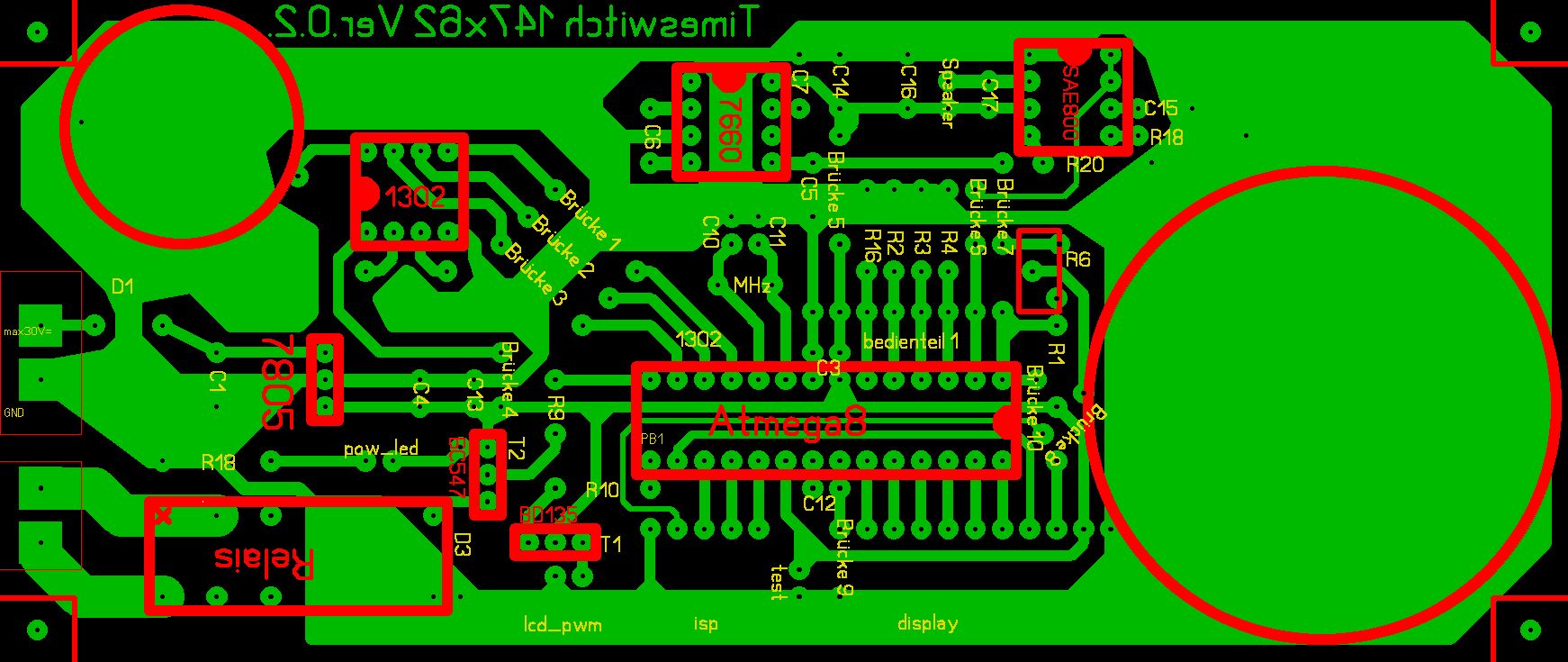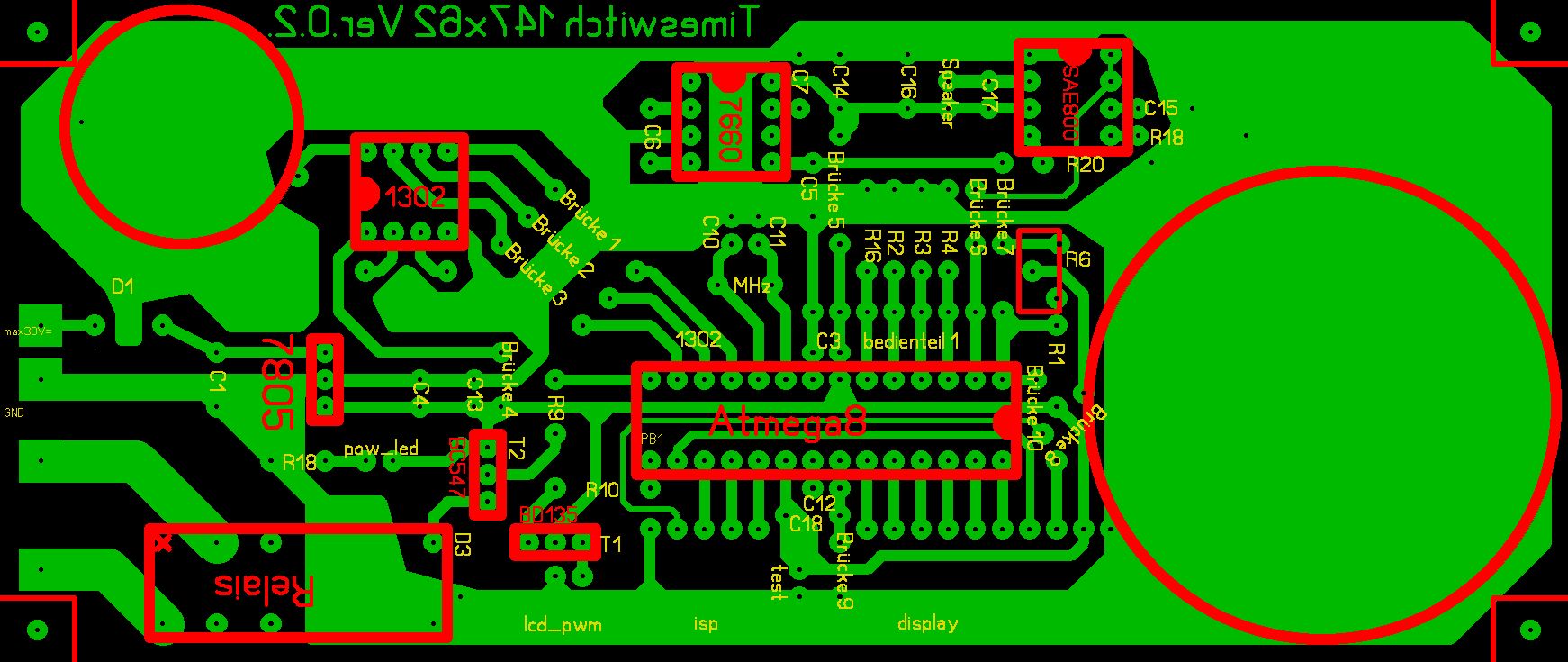 Jens N. schrieb: > Sind die Leiterbahnen für den Schaltkontakt(links am Relais) dafür zu > schmal? ja unnötig schmal, alle anderen unnötig dick, ich würde lieber die Bohrungen größer machen dann repariert es sich leichter.