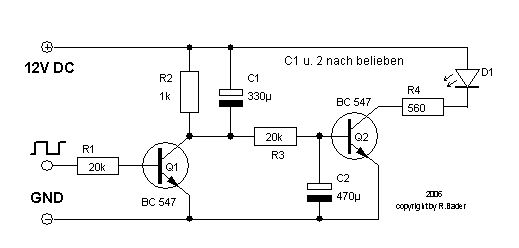 Halo liebe forummitglieder Kannn mir jemand zeigen wie ich eine led langsam aufleuchten lasse und langsam ausleuchten lasse mit nem kondensator? Hat jemand nen schaltplan oder ne erklärung Danke im vorraus