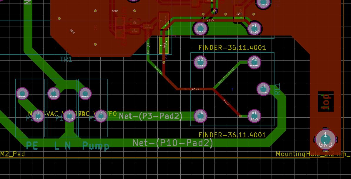 Hallo, ich bräuchte mal eine Meinung zu einem Layout auf dem 230V mit einem Subminiaturrelais geschalten werden soll. Die Bilder Zeigen den Layout Teil um den es geht. Der Abstand zwischen den dicken 230V führenden leitungen und der 12V Leitung betragen etwas mehr als 4.1mm. Ist das so safe? Das verbaute Relais ist folgendes: https://www.reichelt.de/Miniaturrelais/FIN-36-11-12V/3/index.html?ACTION=3&LA=446&ARTICLE=42374&GROUPID=7620&artnr=FIN+36.11+12V&SEARCH=FIN%2B36.11%2B12V Vielen Dank und Grüße