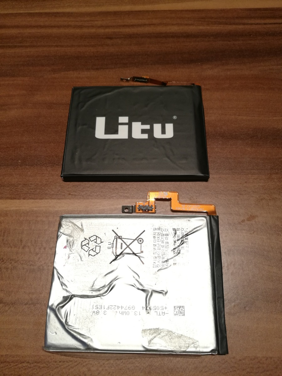 https://www.amazon.de/3400mAh-Smartphone-Blackberry-Passport-BAT-58107-003/dp/B07569M3YW/ref=sr_1_1?ie=UTF8&qid=1515077938&sr=8-1&keywords=CXKJ+Akku+3400mAh+%283.8V%29+f%C3%BCr+Handy+Smartphone+Telefon+Blackberry+Passport%2C+Passport+4G+wie+BAT-58107-003 Sehr interessant, was da gemacht wird: Die eingeklebten Akkus werden aus dem Handy entfernt und um etwas die Spuren zu verwischen (der Lipo hat ja nach dem Entfernen eine gewellte Hülle), kleben die einfach ein neues "Etikett" rund herum. Tolle Nummer, vor allem wenn der Akku dabei beschädigt wurde... Auf dem Bild oben der "neue" und unten ein von mir "unprofessionell" entfernter.