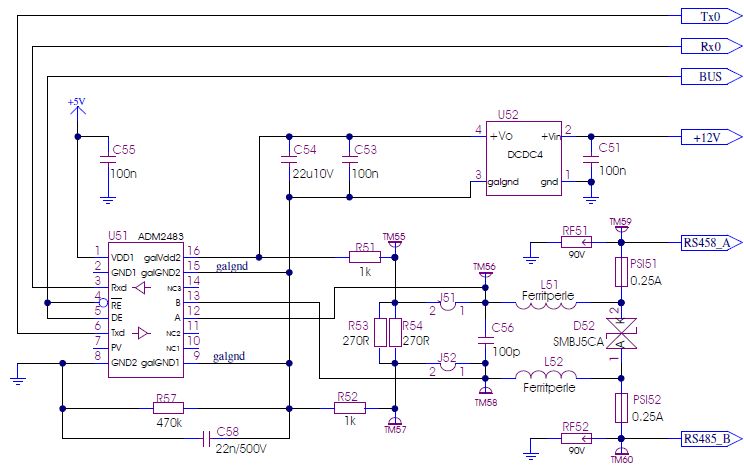 Guten Abend, ich habe eine spezielle Frage zu einem RS485 halb duplex Netzwerk mit mehreren Teilnehmern. Im Anhang findet Ihr ein Bild mit einem (quasi) Schema zur Fragenstellung. Diese besteht aus mehreren RS485 halb duplex Treiberbausteinen. Der Typ MAX1487 soll hier nur als Beispiel fungieren und nur eine untergeordnete Rolle in Beziehung auf Anzahl ,Busbelastung bzw. Leitungslänge darstellen. Wichtig ist, das alle Teilnehmer mit Failsafe Terminierung ausgestattet sind und an den jeweiligen Bus-Enden die entsprechende Terminierung aktiv ist. Wichtig!!! Die Verbindung der Teilnehmer ist nicht 1:1 über das gesamte Netzwerk. Das heisst, A+B können zwischendurch wahllos gekreuzt sein. Meine Frage nun dazu: Welchen Zustand nimmt der Ausgang RO am jeweiligen RS485 Treiber ein, wenn sich alle Treiberausgänge im inaktivem Zustand (IDLE) befinden. Bedeutet, jeder empfängt, jedoch keiner sendet. Hat da jemand praktische Erfahrungen damit? Ich bin Euch schon jetzt für Eure Antworten dankbar. Gruß Dirk
