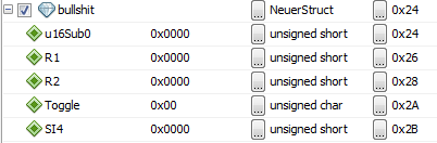 Compiler: (x86)\Microchip\xc16\v1.33\bin\xc16-gcc.exe reicht das als Info? Ist wohl der MPLAB eigene Compiler für PIC24.. Mit der üblichen Nomenklatur funktioniert es UINT16 Toggle :1; /* Subindex3 - Toggle */ UINT16 (SI4); /* Subindex4 */ Allerdings versteh ich nicht was (SI4) bedeutet?!