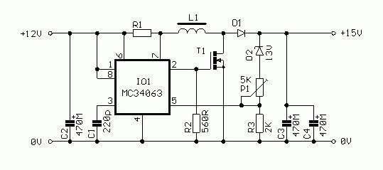 Aufgebaut habe ich das nach dieser Anleitung: http://320volt.com/en/mc34063-12v-15v-dc-dc-konvertor/ Bild von der Bestückung anbei, wo die rote Elipse über der Brücke ist habe ich die Diode D2 eingebaut und bei der roten Elipse über den 3 Lötpunkten den Transistor T2.