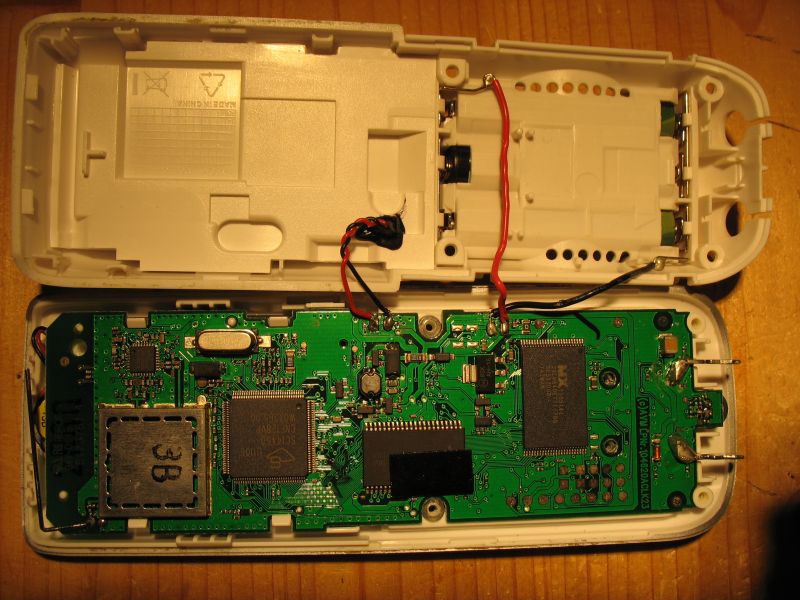Sorry für das ausgraben des Threads, aber ich habe das selbe Problem. Alle Spannungen sind vorhanden 6V von unten, 4V an Akkus, 3,3V nach dem Schaltregler, 1,8V am uC. Das Telefon zieht absolut keinen Strom (Anzeige zwar ungenau, trotzdem 0,00A) Ich habe zwei Möglichkeiten: 1 uC defekt? -> Wegschmeißen 2 Quarz, tauschen (hatte ich auch im Verdacht) Am Quarz liegen 0.9VDC an (uC hat 1,8V) konnte mit meinem 100MHz Oszi keine Schwingung sehen. Aufdruck "TFL.KWPX02" im HC49 SMD Über die Bezeichnung am Quarz kann ich keinen Quarz im Internet finden um einen passenden auszuprobieren. Ich habe daher trotzdem einen 8MHz und 16Mhz angelötet. Leider immernoch keine Schwingung, nur 0,9Vdc dran Ich glaube Mittlerweile, dass der uC defekt ist (warum auch immer...) Es sind nicht wirklich viele Bauteile drauf, ich habe jedes unter der Lupe angeschaut -> keine defekte/Löcher etc. zu sehen. Meine Wärmebildkamera habe ich gar nicht ausgepackt -> Bei 0A werde ich nichts sehen ;-) Vielleicht kann hier jemand helfen? EDIT: bzgl Sicherungen Es sind ein Paar 0R Widerstände als Sicherung drauf, aber alles i.0. sonst würden auch wohl dann ein Paar Spannungsversorgungen fehlen Was mir gerade noch einfällt: Warum sollte der uC 1,8V haben wenn der Flash oder was auch immer das ist 3,3V hat? Ich kann da keine Pegelwandler sehen... Wenn ich das Teil entwickeln würde, dann würde ich, wenn möglich, gleiche Pegel benutzen. Evtl. Probiere ich noch ganz vorsichtig auf die 1,8V 3,3V mit Strombegrenzung einzuspeisen