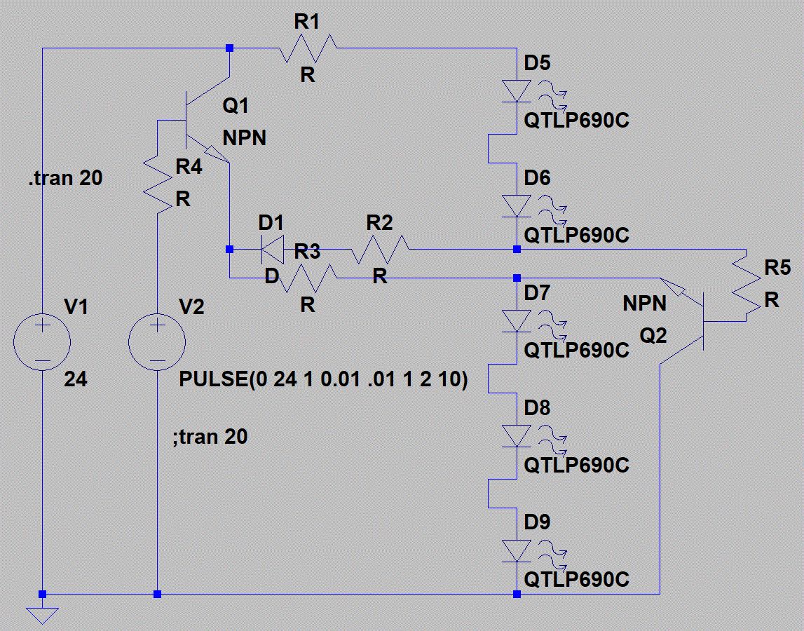 1 | +24V ------R--+--|>|--|>|--|>|--GND |
