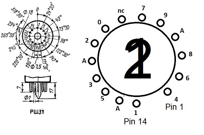Hi, da ich auch gerade mit russischen Anzeigeröhren zu tun hatte, muss ich bedauerlicherweise feststellen, dass auch viele fehlerhafte Dokumentationen im Umlauf sind. Die für mich jedenfalls zuverlässigste Quelle scheint tec. org. ru zu sein. Das für IN-4 entsprechende pdf ist hier zu finden: http://www.tec.org.ru/_bd/7/720_4-.pdf (nicht in die Suchmaschine eingeben, sondern direkt in das Adressfeld des Browsers.) ciao gustav P.S.: http://tec.org.ru/board/ehlekrovakuumnye_pribory/indiuvtornye_pribory/in_4/185-1-0-720 Google Übersetzer gibt folgendes aus: IN-4 ist ein Glimmentladungsindikator zur Anzeige von Dezimalziffern. Das Design der Anzeige IN-4 ist Glas, nicht mit harten Klemmen wie RSh-31 unterstützt. Die Anzeige erfolgt durch die Kuppel des Zylinders. Der Zweck der Ausgaben des Indikators IN-4:1 1 Nummer 4 2 Nummer 6 3 Ziffer 8 4 der Bildschirm 5 Ziffer 9 6. Ziffer 7 7. nicht verbunden 8. Ziffer 0 9. Nummer 2 10 zweite Anode (optional) 11. Nummer 3 12. Nummer 5 13. Anode 14. Ziffer 1