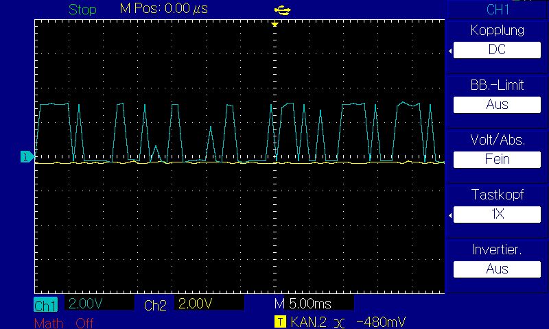 Wie man aber sieht, sind es keine sauberen Rechtecksignale.