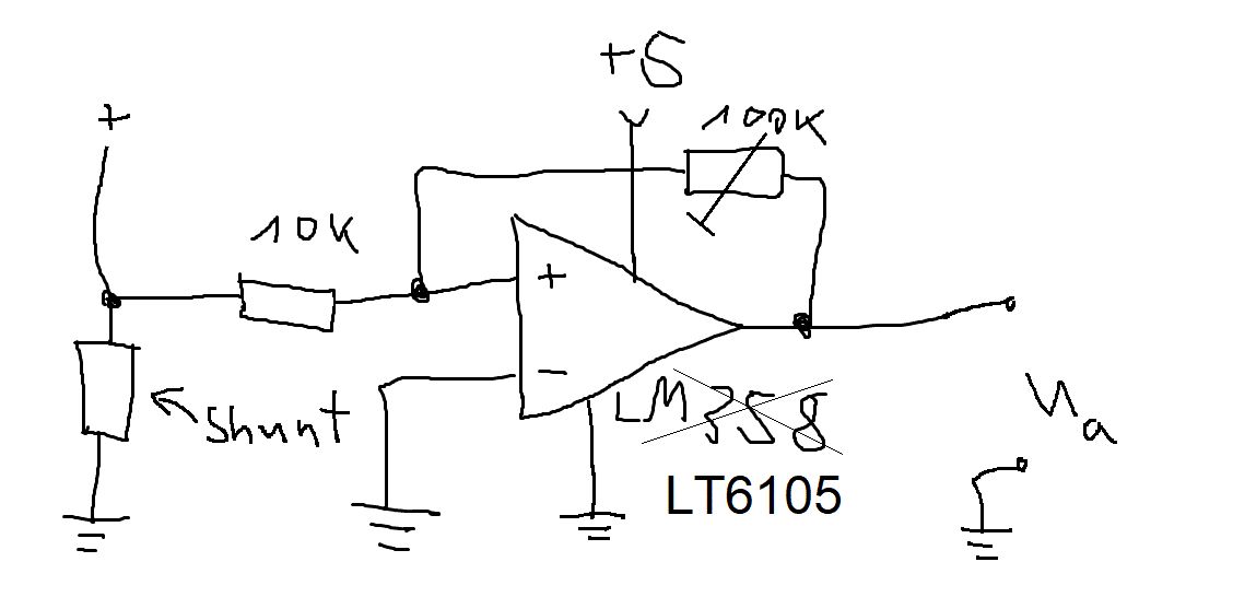 Nils N. schrieb: > Lege an den positiven Eingangs die halbe Betriebsspannung an und sorge > dafür, dass deine Shuntspannung als Referenz auch diese halbe > Betriebsspannung hat. Das kann ich machen, dann kann ich aber auch weiterhin den LM358 verwenden und hätte sogar eine einstellbare Verstärkung bis weit über 100. Der 10nF dient nur zur Rauschunterdrückung. Aber das größte Problem ist jetzt, dass der Shunt potenzialmäßig keinen Bezug mehr zu GND hat. Und genau darum geht es. tsaG schrieb: > Ein steilflankiges Rechtecksignal Ein nachgeschalteter Tiefpass am Ausgang (RC-Glied) bildet automatisch den arithmetischen Mittelwert.