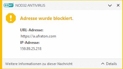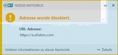 NOD32 blockiert eine bestimmte URL (siehe Anhang). Die Nachricht taucht plötzlich auf und kann nicht mit einer bestimmten Seite verbunden werden. Wie kann ich herausbekommen welches Programm/Wer die Adresse aufruft?