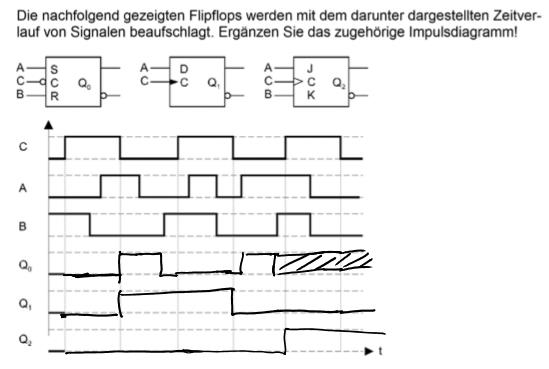 Guten Tag, ich hätte mal eine Frage zu folgender Aufgabe (siehe Bild). dabei geht es um Q0 es ist RS-FF das auf die negativ Flanke getriggert wird. Meine Frage ist warum ändert sich der Zustand nachdem bei der ersten negative Flanke auf High gegangen ist nochmal auf Low? Ist das falsch? MbG Christian