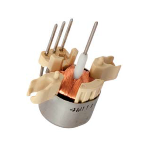 Ich tippe sehr, dass das gar kein Motor im eigentlichen Sinn ist. Oder wenn schon, dann sowas wie ein unipolarer Schrittmotor mit 4 Schritten pro Umdrehung... Oder eben ein Kreuzspulenmesswerk: https://de.m.wikipedia.org/wiki/Kreuzspulmesswerk