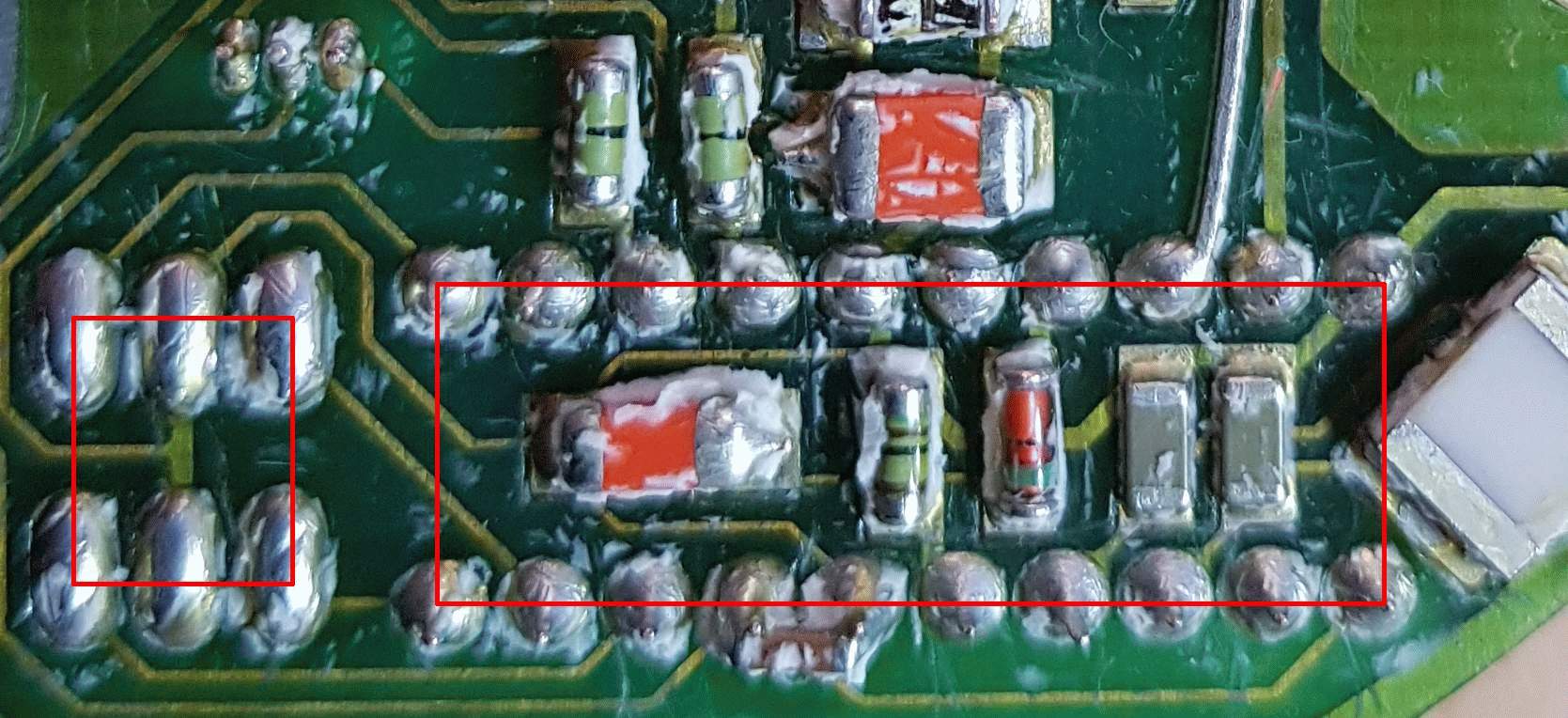 Rene Z. schrieb: > Hallo, > mit ST6 kenne ich mich überhaupt nicht aus. Aber so Richtung ST6253C, > ST6262B/C, ST6263B/C passt da nix. Kannst du den wahrscheinlichen Typ > etwas genauer angeben? > Gruß Rene Hat er doch gemacht! Ist (vermutlich) der ST6208C.. Und da passt das Layout wirklich sehr gut zu... Nur das GND an Pin 15 lässt sich dadurch nicht zu 100% erklären, aber das ist noch kein Ausschlusskriterium. Wenn der Ausgangspin auf Low gezogen ist oder als Eingang geschaltet ist, dann würde auch eine Verbindung im Layout mit GND nicht stören (wenn gleich man nach dem Sinn fragen muss). Hast du nur die Pegel gemessen, war der vermutlicht nur gerade auf GND Level... Ob es wirklich ein ST8208C ist kann man nicht definitiv sagen, aber was jetzt schon feststeht ist das ein passend programmierter ST6208 in der Schaltung funktionieren würde! Ansonsten gibt es bei den PICs noch einige die auf dem ersten Blick ähnlich sind, aber die Belegung des Osc. Anschlüsse sagen da ganz klar das es kein Pic sein kann. Die sind da um einen Pin Verschoben! Gruß Carsten