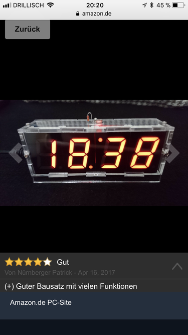 Hallo Spezialisten, ich hoffe das ist nicht zu unverschämt ;-), Hab eine China Uhr mit STC15F204CA Controller, mit 4 Stellen 7 Segment, Uhrzeit, Datum, Temperaturanzeige. Leider kann die keine 24 Stunden Uhr und das Datum wir im amerikanischen Format angezeigt. Falls hier jemand die "Firmware" einmal für DE angepasst hat, wäre ich sehr dankbar wenn sie mir zur Verfügung gestellt werden kann. Selber machen wäre nicht möglich, dazu fehlt mir der tiefere Durchblick. Ich finde dieses "Retro Design" einfach schön und wüde mich sehr freuen .... Danke