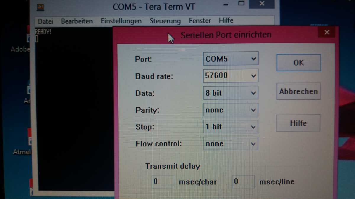 Was aber sehr komisch ist, bei mir werden Zeichen in beiden Richtungen übertragen bei 57.600 nach READY ! Ob ich nur Enter drück oder was eingebe immer das gleiche wo an der Gegenseite an kommt. Wie kann das sein ? wenn nur nee Demo drin ist ? Anbei 3 Fotos Gruß Uwe