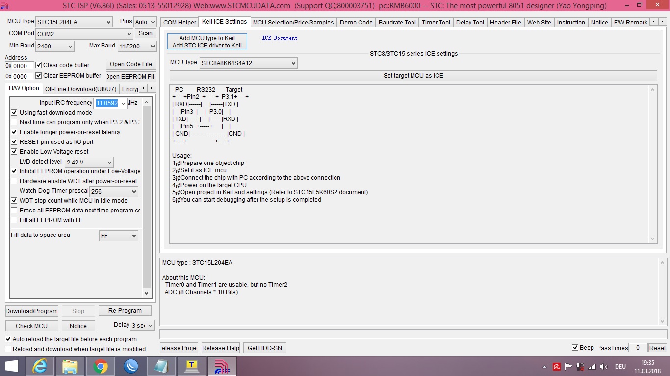 Das stimmt und das STC15L204 Board kostet 1,78 € fürs gleiche Geld bekommst z.B. ein STM32F103 Board mit 72 MHz - 32 bit. 805x ist ja aus den 90er noch zu ELEKTOR Bastelzeiten mit dem 80C32 und 8052 AH Basic