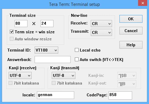 In TerraTerm (Version 4.97) ist das Terminal so konfiguriert wie im