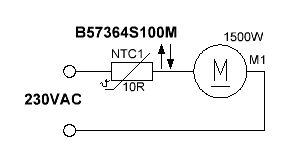 Hallo Ich möchte mir für meinen Kompressor (230VAC/1500W) eine möglichst einfache Einschaltstrombegrenzung bauen. Dabei dachte ich an einen NTC in Reihe. Nun weis ich aber nicht, welchen NTC ich dazu verwenden kann, oder ob meine Überlegung überhaupt so umsetzbar ist. Schaltungsvorstellung anbei. Im Datenblatt des NTC (Typ: B57364S100M) steht: 10 Ohm bei 25°C Imax: 7,5A