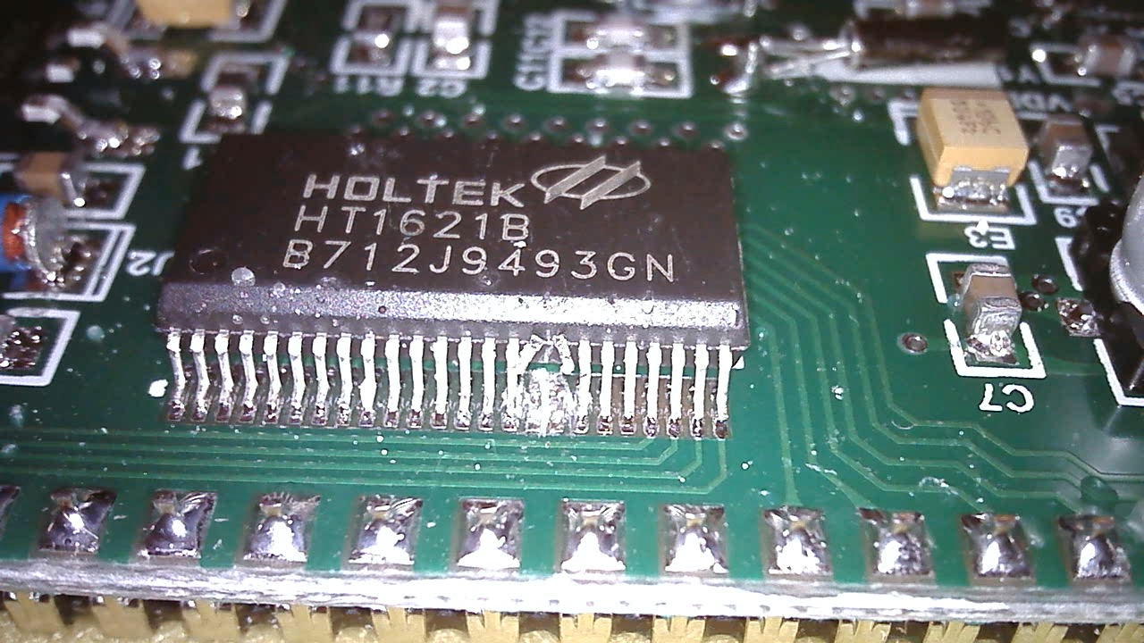 batman schrieb: > Ich würde die gar nicht verbinden, sondern dafür evt. eine negative > Kontrastspannung erzeugen. Wie hoch war die im Betrieb? pin 16 ist VLCD (Konstrastspannung) und pin 17 ist VDD (positive Versorgungsspannung) beim HT1621B. Der Chip hat offensichtlich keine negative Versorgungsspannung! Im Datenblatt wird für VDD = 5V Betrieb ein 15kOhm Poti von VDD nach VLCD vorgeschlagen, welches auf VLCD = 4V abzugleich ist: "Adjust VR to fit LCD display, at VDD=5V, VLCD=4V, VR=15kOhm±20%" Also trenne die Pins 16+17. (schon gemacht) Löte ein testweise ein Poti zwischen Pin 16+17 und drehe dran rum bis der Kontrast passt. Dann Poti auslöten, Wert ermitteln und passenden Widerstand einlöten. Fertig.