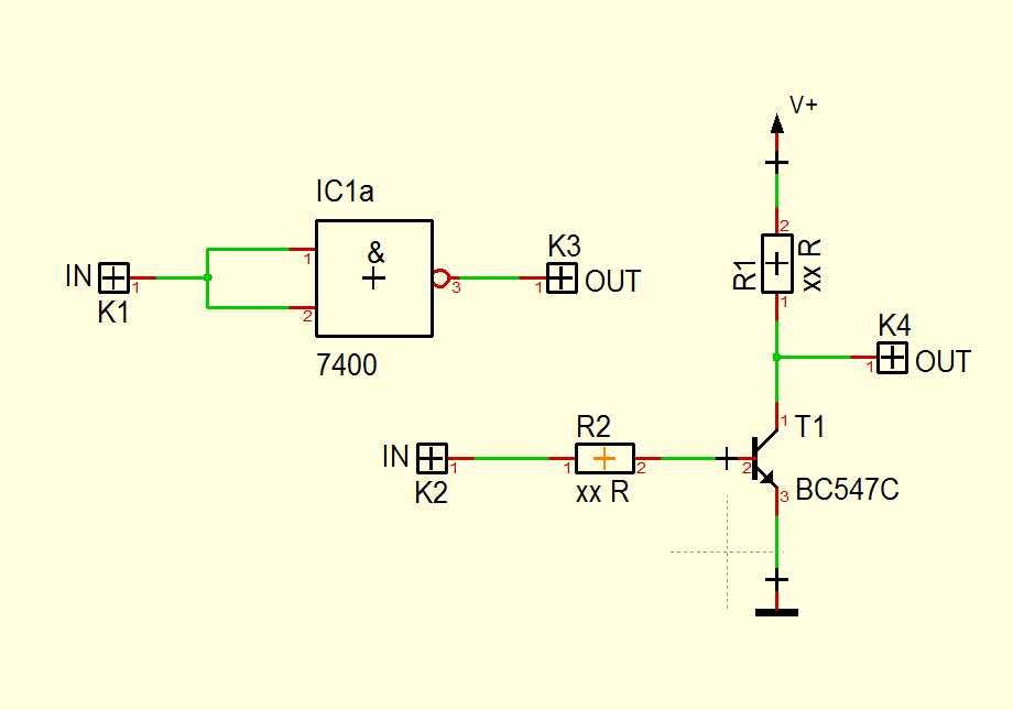 Jörg R. schrieb: > Abschreiben gilt nicht;-) Sorry! Hab es übersehen... Jörg R. schrieb: > Hast Du noch ein Nand-Gatter übrig. Eingänge verbinden - schon negiert > es. Andere Möglichkeit - NPN-Transistor, z.B. BC547, und ein Widerstand. Good Luck!