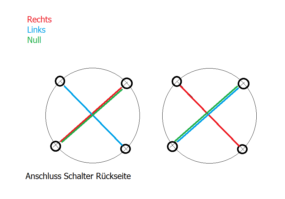 Eigentlich ganz einfach: Für mein mechanisches Planetenmodell brauchte ich einen Dreh- richtungsumschalter (DC). In der Grabbelkiste war da so ein 40 Jahre altes Exemplar mit vernünftiger Haptik. 2 x 2 Schließer, passt. Eingelötet, funktioniert, aber wieso wird das Drahtpoti für die Geschwindigkeit so heiß? Das Teil macht in Nullstellung einen satten Kurzschluss. Drähte ablöten und mal messen, dann das Resthirn anwerfen und eine neue Verkabelung anlöten. Jetzt geht es ohne Kurzschluss. Bild 2 zeigt die Lötpunkte und Verbindungen in den Schaltern. Grüße Bernd