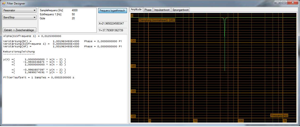 FIR: Es werden die letzten Samples in einen Speicher geschrieben, das können sehr viele sein. Mindestens so viele, wie die Periodendauer der niedrigsten zu filternden Frequenz. Für jede neue Sample werden alle Samples mit einem bestimmten Wert multipliziert und akkumuliert. Das kann sehr rechanaufwändig sein. Das Ergebnis ist das gefilterte Zeitsignal. IIR: Wesentlich weniger Rechenaufwand, aber man muss, je nach Verhältnis Sample-Rate und niedrigste zu filternde Frequenz sowie Filterordnung und natürlich der Genauigkeit (= Auflösung) mit erheblich breiteren Worten als üblich rechnen. 32 Bit Integer ist ganz schnell viel zu wenig, Float sowieso, 64 Bit Integer kann reichlich, aber auch viel zu wenig sein (Double Float auch). Wer analoge Filter kennt und berechnen (lassen) kann, kann die zugehörigen digitalen Algorithmen und Koeffizienten vielleicht ganz gut aus http://www.beis.de/Elektronik/Filter/AnaDigFilt/AnaDigFilt.html ermitteln und mit einem Programm berechnen.