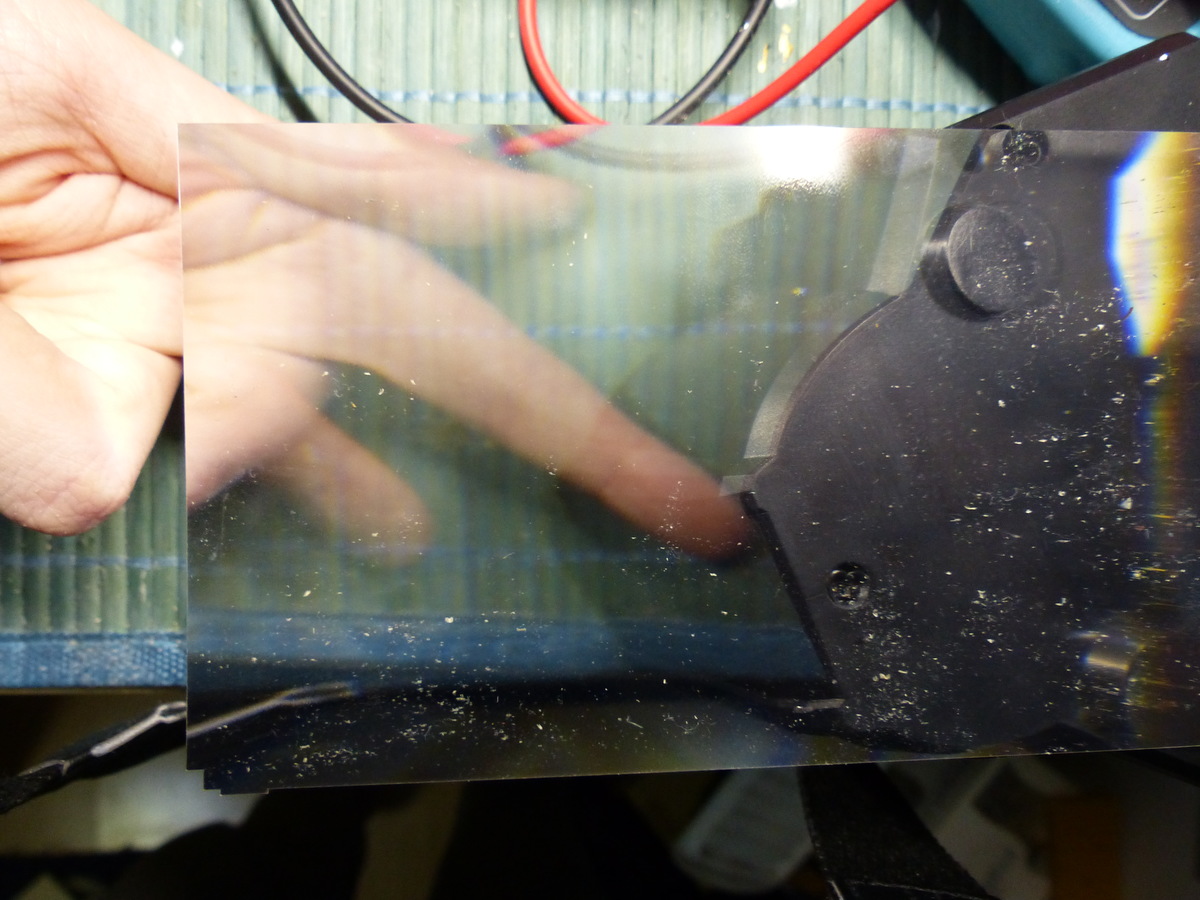 Okey, grad getestet. Ist keine Polarisationsfolie. EDIT: Ah, danke für den Link! Hatte ichs doch richtig im Kopf dass solche Bildschirme Polarisationsfolien brauchen. Glaube aber die ist in meinem Fall irgendwie in dem festen Glas des Displays integriert, denn der Bildschirm funktioniert recht gut selbst wenn man Tageslicht oder eine Lampe dahinter nimmt (darum auch meine Idee zu experiemntieren ob sich damit zusammen mit starken UV LEDs, ein DLP Drucker bauen lässt).