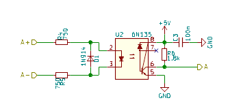 Guten Abend zusammen, Ich habe ein paar Fragen bezüglich der Anbindung eines optischen 3-Kanal-Encoders mit einer Betriebsspannung von 24 V DC der Firma Nanotec: https://de.nanotec.com/produkte/809-noe2-24-k14-5-mm/ Ich möchte vorwegnehmen, dass ich mich als Anfänger betrachten würde und meine Hauptmotivation mich mit Elektronik zu beschäftigen ist, dass ich etwas lernen möchte und es mir Spaß macht. Als solches erwarte ich dann auch nicht, dass mir hier etwas vorgekaut wird, falls mir jemand helfen möchte, sondern ich würde mich schon über Hinweise die mich in die richtige Richtung stoßen bei Dingen die ich übersehe, bzw. völliger Schwachsinn sind sehr freuen. Der Encoder liefert differentielle Signale je Kanal und soll an einen Mikrocontroller (STM32F103) angeschlossen werden. Dabei werden außschließlich 5 V tolerante Pins des STM32 genutzt. Zur Anbindung hatte ich an einen AM26LS33ANC der Firma Texas Instrument gedacht: http://www.ti.com/product/AM26LS33A/datasheet Die erlaubte common mode Voltage ist mit +-15 angegeben, verstehe ich dass richtig, dass bei differentiellen Siglanen die common mode Voltage als (V1 + V2)/2 zu sehen ist? Demnach würde ich den Encoder der zwischen 0 und 24 V liegt anschließen können? Des weiteren, ist dies überhaupt empfehlenswert, wenn die absolute maximum ratings eine Eingangsspannung der differentiellen Eingänge von +-25V angeben? Oder kann ich bedenkenlos den IC gemäß des ersten Bildes anschließen? Falls es nicht möglich ist, habe ich mir gedanken gemacht und wollte (selbst falls es möglich sein sollte den AM26LS33 zu nutzen) fragen ob man einen Optokoppler gemäß dem zweiten Bild verwenden kann, bzw. ob dies überhaupt sinnvoll ist. Ich bedanke mich auf jeden Fall schon einmal bei jedem Leser für die Zeit die er dafür aufgewandt hat. In diesem Sinne noch einen schönen Abend. Gruß