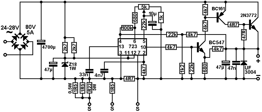 sieht sehr ähnlich aus. :-) Beitrag "LM723 Regelbares Netzteil von 0-30V/0-3A" Beitrag "Realistisches Spice-Modell für LM723?" Beitrag "LTspice Potentiometer - Fehler" Beitrag "Netzgerät 0-30V/0-6(8)A mit 723 runderneuert" http://pegons-web.de/2power1.html