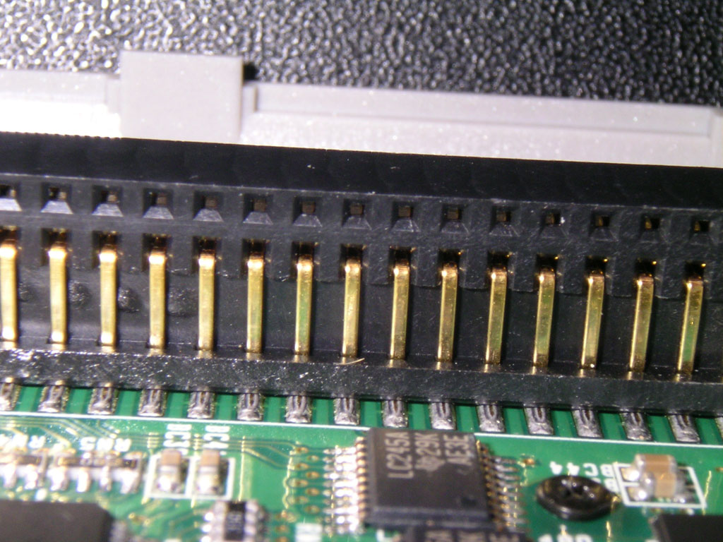 Hallo, ich habe ein Problem, bei dem ihr vielleicht helfen könnt. Ich habe bei Ebay einen MP3 Player ersteigert, in den eine 2,5" IDE Festplatte kommt. Ersteigert habe ich ohne Platte und dachte, ich könnte einfach nur eine Notebookplatte einlegen. Nun öffne ich das Ding und sehe einen Spezialstecker, den ich noch nie im Leben gesehen habe (siehe Foto im Anhang - die Kontakte sind auf beiden Seiten vorhanden). Er weist die gleiche Anzahl Pole und den gleichen Abstand wie ein normaler IDE auf, ist vermutlich auch von der Belegung her identisch, aber die Platte müsste also nun eine spezielle Buchse aufweisen um zu passen. Hat das schon mal jemand gesehen? Gibt es Platten, die diese Buchse aufweisen und wie heißen die? Hilfe ! Danke Magnus