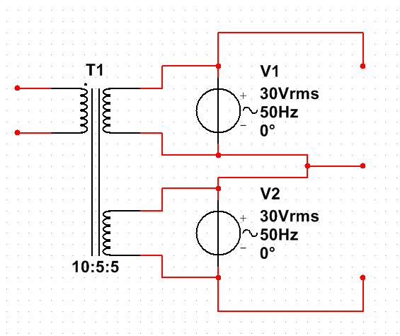 Hallo; Auf dem Bild seht ihr eine Schaltung. Ich möchte die sekundär Spulen so verbinden, dass nach dem Gleichrichten die Ausgangsspannung beider gleichgerichteten Teile zum einen positiv ist und eine gemeinsame Masse besitzt. Hab ich das richtig gemacht? Entschuldigt bitte, dass es so ein knappes Schaltbild ist, ich hatte wenig Zeit. Liebe Grüße